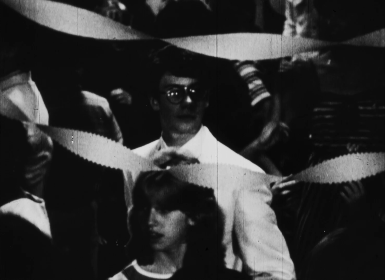 A violated text, a hint of which leaks out through the cut-up, generates a film with its own overt surprises and suppressed associations. An old kind of poem bears, under pressure of a backwards undertow, a brash new cinema poem. Sharp and even funny, it grows out of a new mode of working, developing my desire to work collaboratively in a way that stimulates and benefits from the creative associations and acts of others. Doug Foote, David Gresalfi, Erick Pinedo—it’s fully their film, too. Kathy Benedek started it off. Karen Krawczyk, Jack Holland, Chris Sivolella made creative contributions. Also Henry Lou, Marty Sheehan, Tom Murray, Fernando Pimenta. (Larry Gottheim)